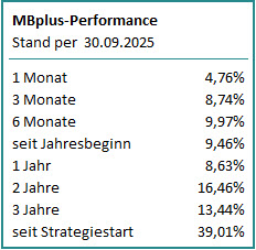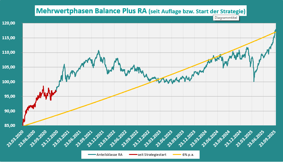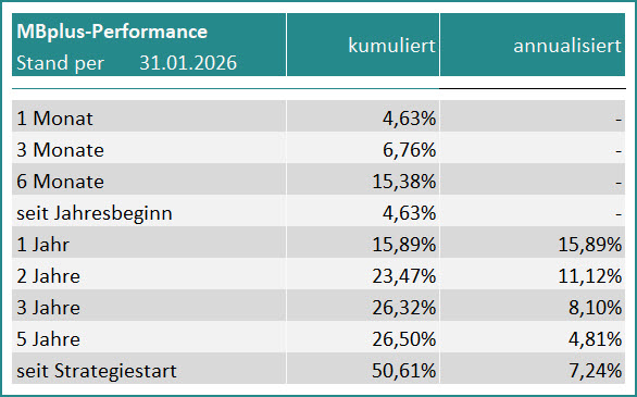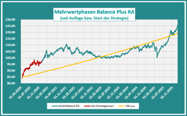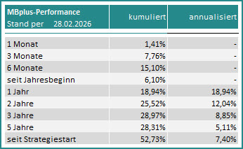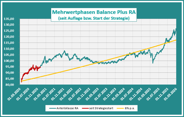 Die tatsächliche Entwicklung des MBplus seit Beginn der Umsetzung des neuen Konzepts bis zur Auflage der Anteilsklasse RA am 15.12.2020 ist in obiger Grafik in rot kenntlich gemacht.